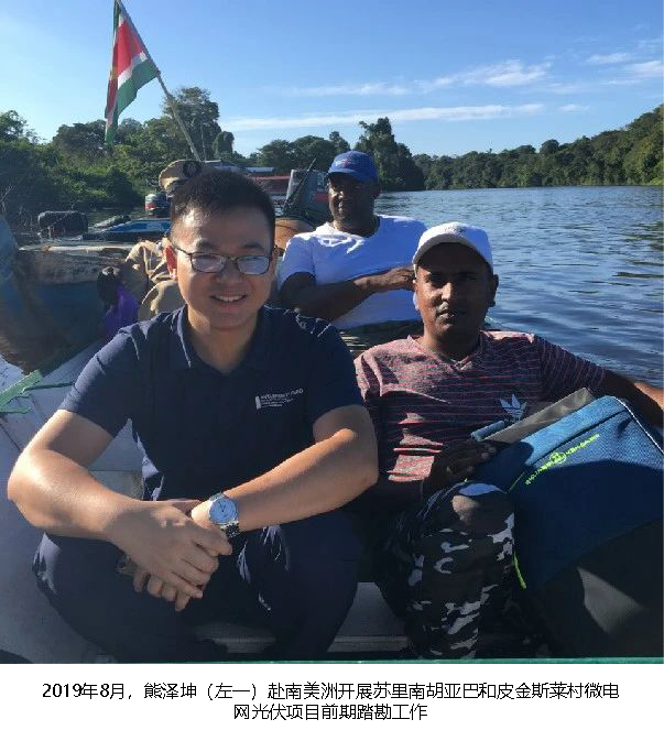 可是施工難題接踵而至,當?shù)刂脖幻懿?、道路崎嶇、物資匱乏。面對蘇里南項目履約中的員工思鄉(xiāng)、登革熱疫情及調(diào)試人員無法入境等難題,熊澤坤帶領(lǐng)團隊全力攻堅:他悉心關(guān)懷患病員工、疏導情緒并保障防疫物資;果斷決策,率團隊克服時差,通過遠程學習自主完成設(shè)備調(diào)試。連續(xù)數(shù)月的汗水,澆灌出碩果:2019年,村莊微電網(wǎng)一期提前5天并網(wǎng)成功。